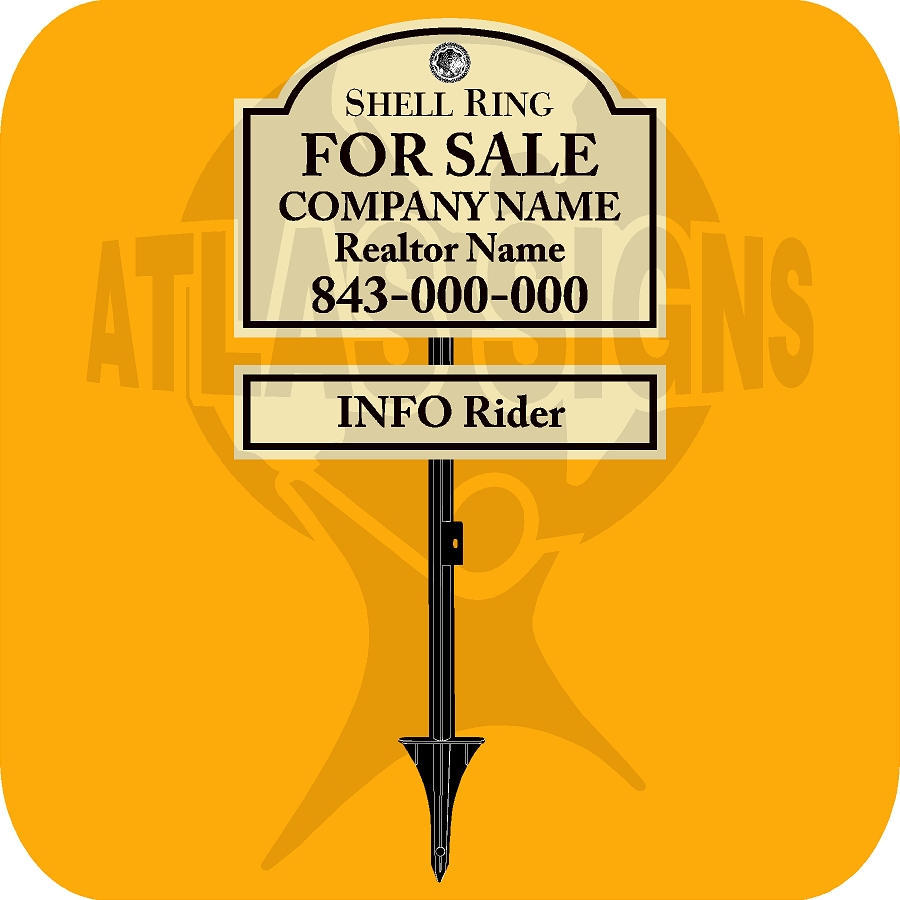 The official Shell Ring “For Sale” sign is required throughout Shell Ring for the sale of any property.  The additional rider at the bottom of this sign is the perfect place to add more important information about the property.  GoAtlas.com,  is proud to offer this product to you at a great price.
